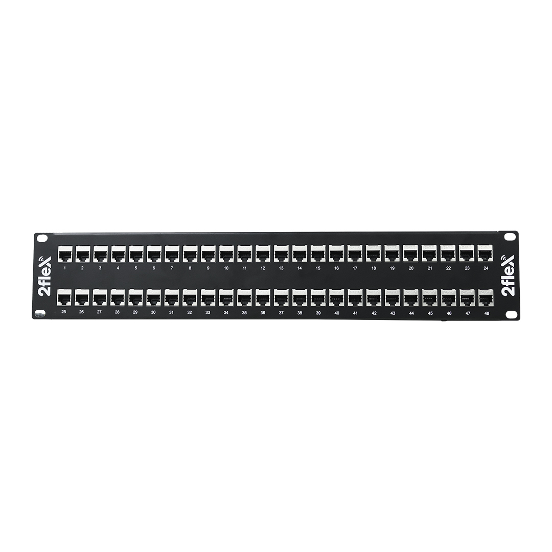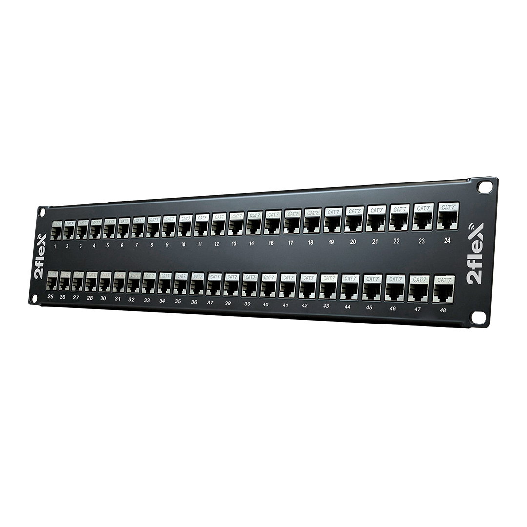 O Patch Panel Blindado (STP) da 2Flex é uma solução de cabeamento estruturado de alto desempenho, ideal para aplicações de voz, dados e imagem em redes que exigem alta largura de banda e proteção contra interferências eletromagnéticas. Tem a função de distribuição de serviços fornecendo uma facilidade de identificar e manobrar os cabos tornando o visual muito mais limpo e organizado. Além disso, é compatível com a norma TIA/EIA CAT.7, sendo indicado para ambientes de telecomunicações com operação de até 500 MHz. Com suporte a 10 Gigabit Ethernet (10GBASE-T), oferece estabilidade, confiabilidade e excelente integridade de sinal, mesmo em instalações com alta densidade de cabos.